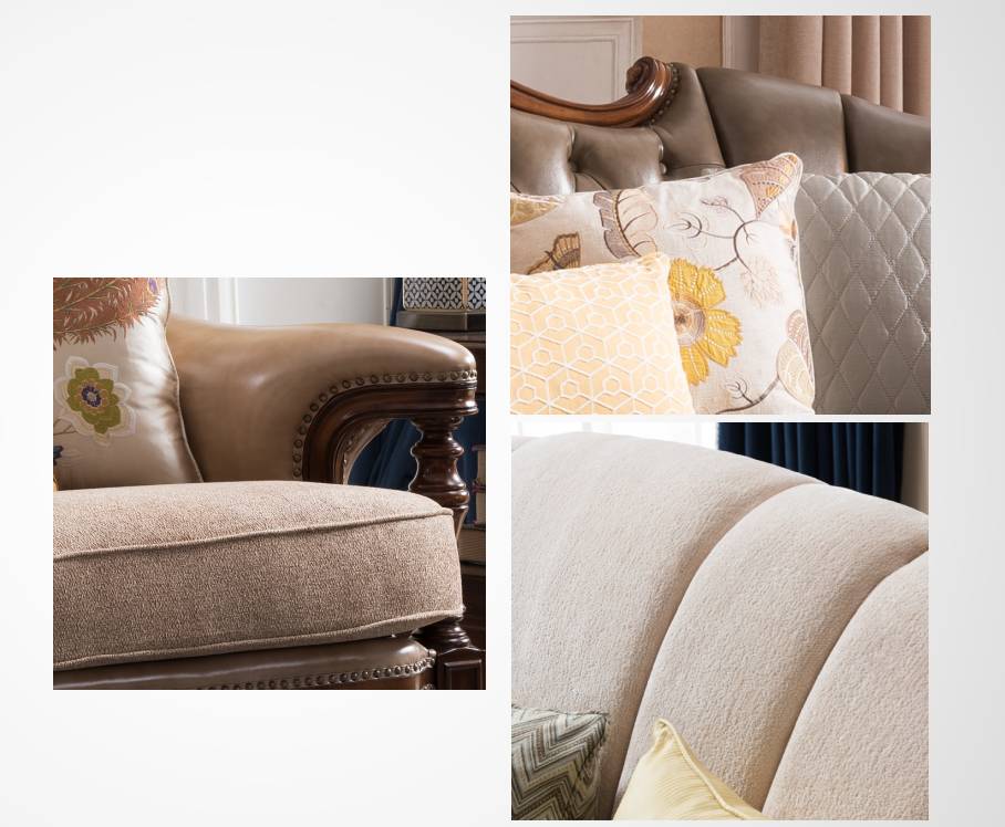 一件舒适的美式家具必然少不了精心选用的接触面料,生活是多色彩的,可以选择温馨布艺,也可以选择高贵的皮质。每一个材质都会给予你不一样的生活舒适感,如皮质是采用精选的头层黄牛皮尊贵、高雅,头层黄牛皮有着人的“第二层皮肤”的美誉,在使用中可以有着很好的贴身性和舒适感。